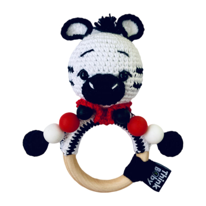 High Contrast Crochet Rattle & Teether - Zebra