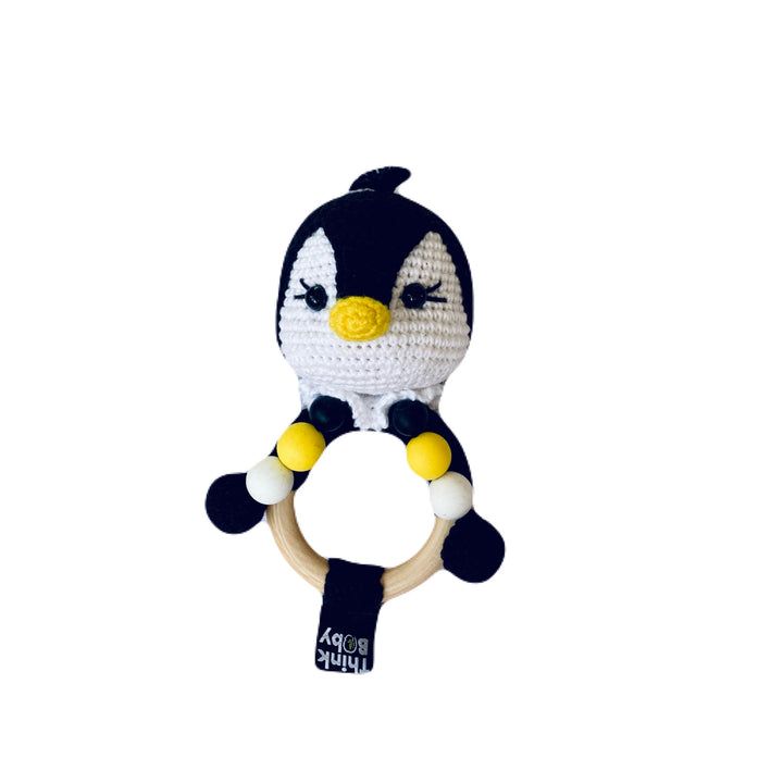 alt="High Contrast Crochet Rattle & Teether - Penguin"