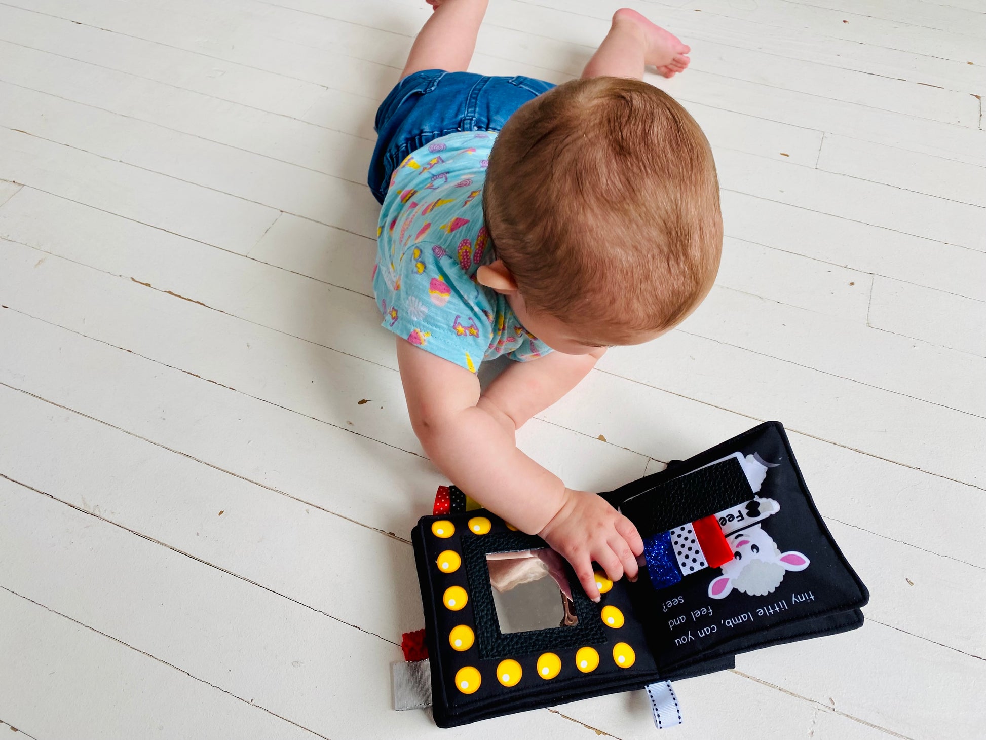 This Busy Book is sure to engage your little ones senses and encourage playing with and discovering of textures, sounds, shapes and colors.