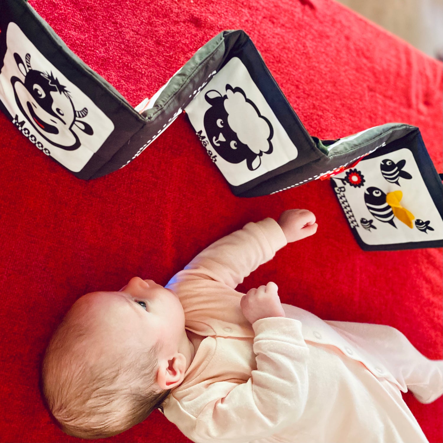 The Think Baby Cot buddy is a versatile and practical tool to tickle your babies sensory appetite, all while capturing their visual attention with simple High Contrast Designs.