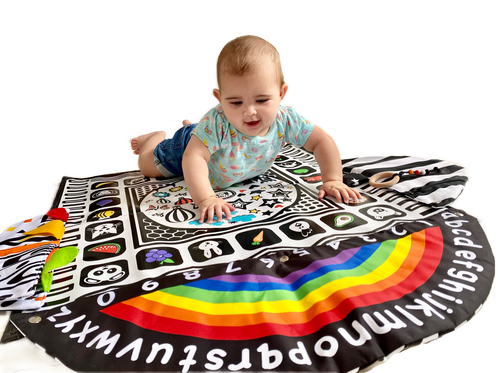 When arriving in this world, and throughout the first year of life, your baby is often overwhelmed by what they see. High Contrast Images provide a calming point of focus - something your baby can easily focus on and will love to look at.